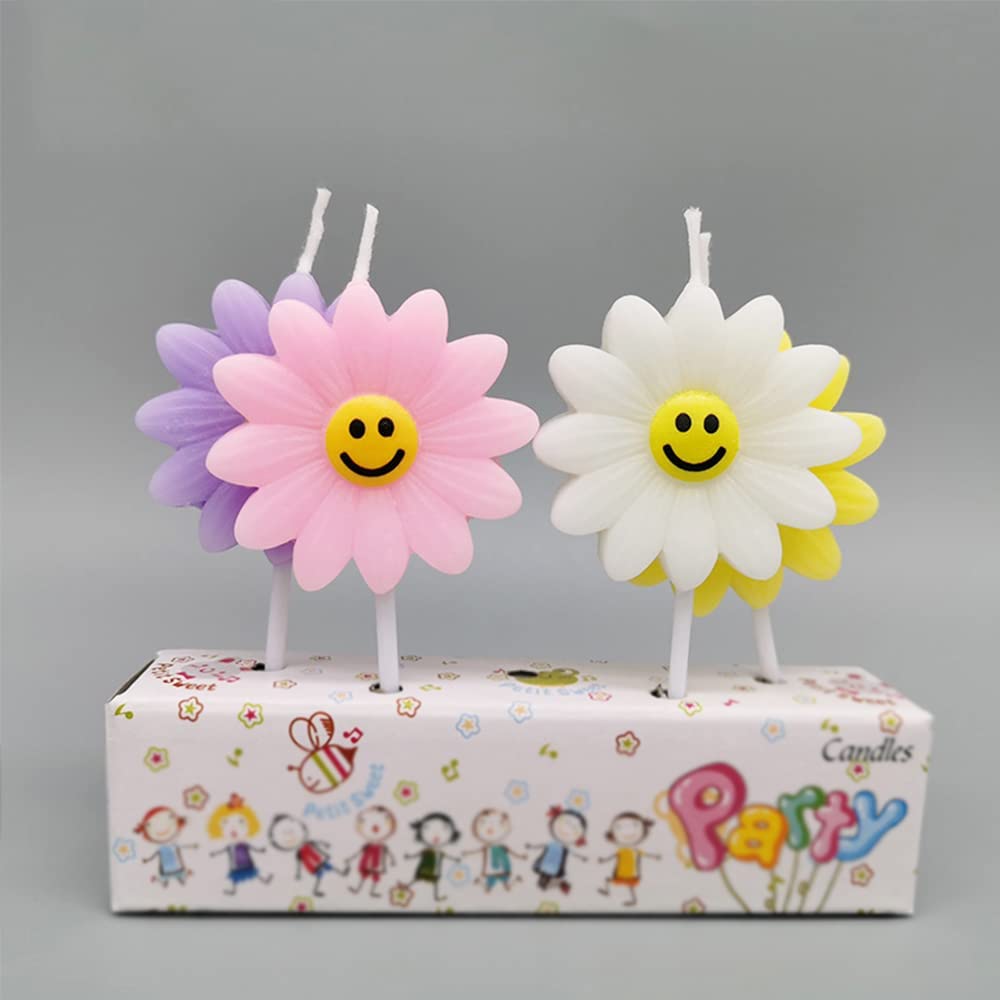 • 4Pcs/Set Daisy Birthday Candles, Cute Sunflowers Candles with Smiley Faces, Childrens Birthday Candles, Birthday Cake Decorations - White, Purple, Pink, Yellow $15.98