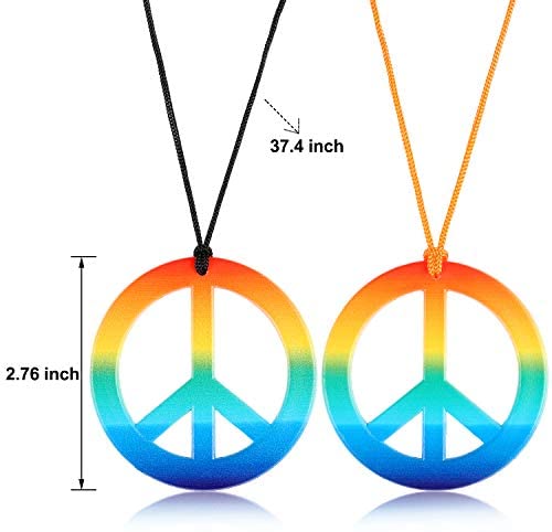 16 Pack Peace Sign Pendant Necklace Rainbow Hippie Necklace 60s 70s Costume Accessory Set for Hippie Party Supplies