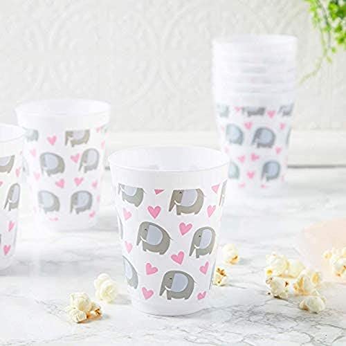 16 oz Plastic Tumbler Cups, Elephant Baby Shower Decorations for Girl (16 Pack)