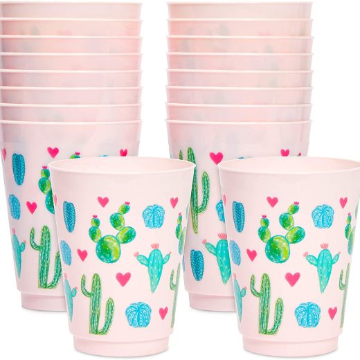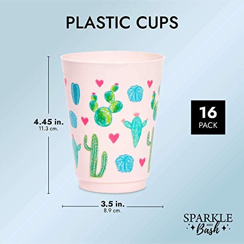 16 oz Plastic Cactus Tumbler Cups, Fiesta Party Supplies (Pink, 16 Pack)