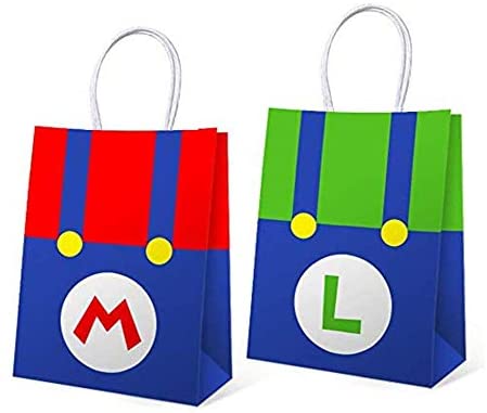 16 PCS Birthday Favor Gift Bags for Super Bros Mario Birthday Party Supplies for Kids, Party Bags for Super Bros Mario Themed Party Supplies Favors Birthday Party Decorations, 5.9 3.2 8.3 inch