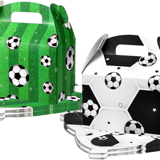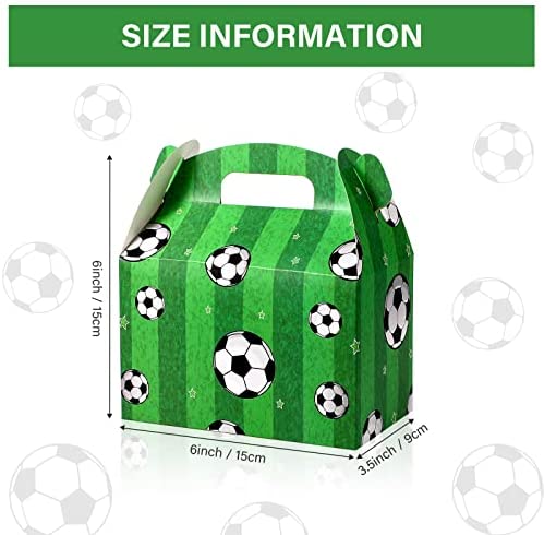 16 Pack Soccer Treat Boxes Gable Boxes Candy Goodie Boxes Paper Gift Boxes with Handle Kids Baby Shower Birthday Party Favor Boxes Cookie Boxes 6 x 6 x 3.5 Inch