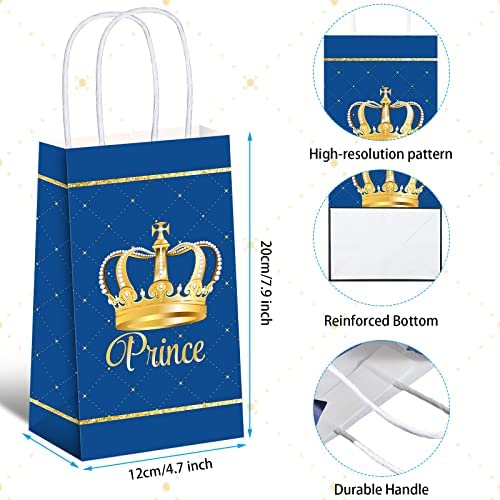 16 Pack Prince Party Gift Bags Prince Theme Birthday Party Treat Bags Blue Candy Goodie Bags Kraft Wrap Bags with Handles for Boys Kids Birthday Baby Shower Party Favors Supplies
