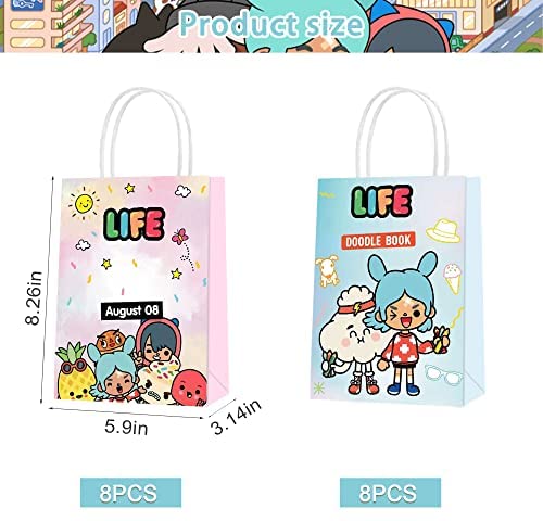 16 Pack Toca Life Party Bags paper bags,Toca Bo-ca Bags for Kids Birthday,Candy Treat Bags for Boys Girls Toca Life Birthday Party Supplies