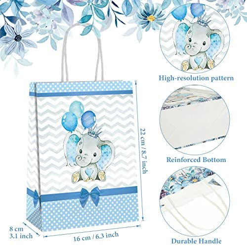 16 Packs Elephant Baby Gift Bags Baby Shower Party Treat Bags Blue Elephant Candy Goodie Bags Birthday Party Favor Bags for Baby Boy Girl Gender Reveal Kids Birthday Party Supplies
