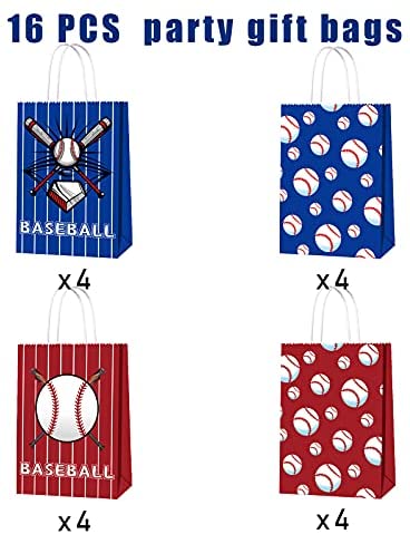 16 PCS Baseball Gift Bags, Baseball Goodie Bags for Baseball Birthday Party Supplies, Baseball Bag for Kids Baseball Theme Party Supplies with Handle, Baseball Treat Bags, Baseball Favor Bags