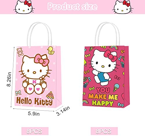 16 Pack Hello Kitty Party Bags paper bags, Cute Kitten Bags for Kids Birthday,Candy Treat Bags for Boys Girls Child Kitty Birthday Party Supplies
