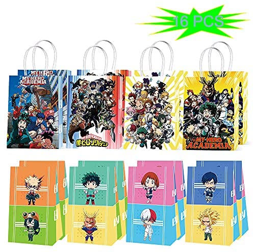 16 Pack My Hero Academia Gift Bags, Anime Goodie Bags Party Favors, Birthday Party Decoration for Kids, Girls, Boys, 16 Piece Assortment