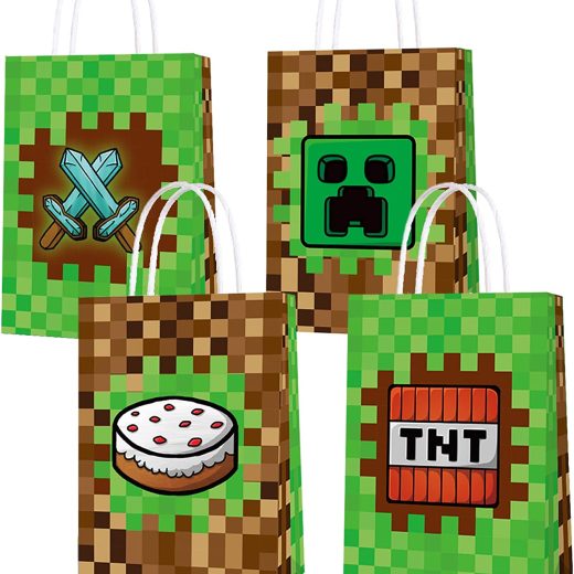 16 Pack Pixels Party Gift Bags for Pixels Miner Themed Party Supplies, Candy Bags Goodie Bags Party Favor Bags for Children PixelsTheme Birthday Party Supplies