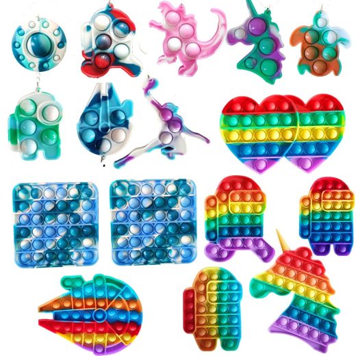 16 Packs Rainbow Pop Bubble Fidget Sensory Push Tool,Mini Animal UFO Starship Shapes Stress Relief Toy