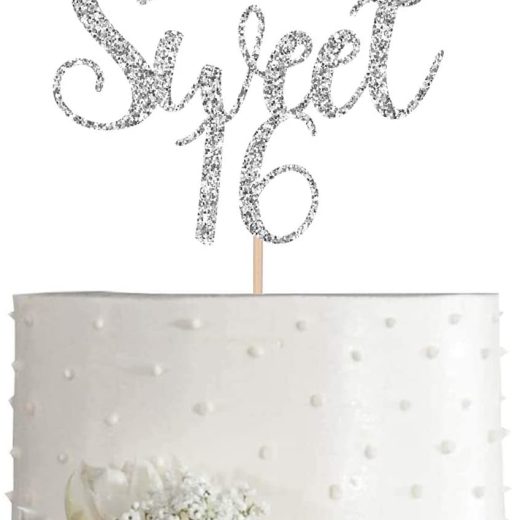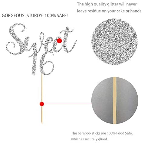 16 Silver Glitter Happy 16th Birthday Cake Topper, Sweet 16 Birthday Party Decorations, Supplies, cake topper