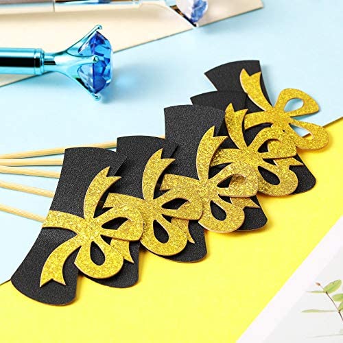 16 Pieces Diploma Confetti 2.5 Inch Graduation Centerpieces Congrats Grad Party Decorations Class of 2021 High School College Graduation Supplies Graduation Table Decor for Boys Girls, Glitter Gold