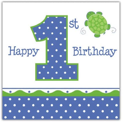 16-Count Paper Lunch Napkins, Mr. Turtle Happy 1st Birthday