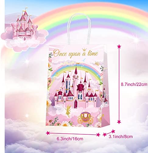 16 Pieces Large Princess Party Bag, Gift Treat Goody Bags for Girls Kids Birthday, Pink Princess Castle Candy Bags with Handle for Baby Shower Birthday Party Favors Supplies, 8.7 x 6.3 x 3.1 inches