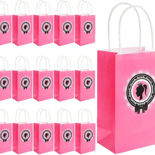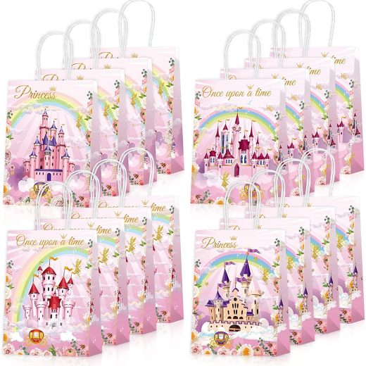 16 Pieces Cute Girl Party Bags Princess Party Paper Gift Bags Princess Gift Princess Goodie Bags with Handles for princess girl Birthday Party Supplies Decorations Kids Party Favors