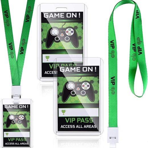 16 Pieces Video Game VIP Pass Holder Tickets Gamer Party VIP Pass Lanyards Video Game Party Favors for Game Themed Birthday Party Supplies
