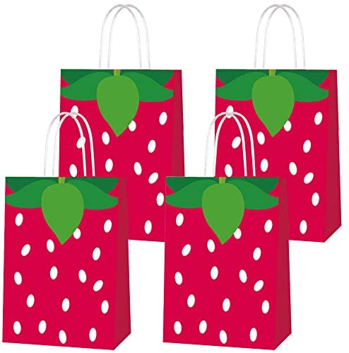 16pcs Strawberry Party Bags for Strawberry Birthday Party Supplies Party Gift Goody Treat Candy Bags Favors Decor Girls Kids Birthday Decorations