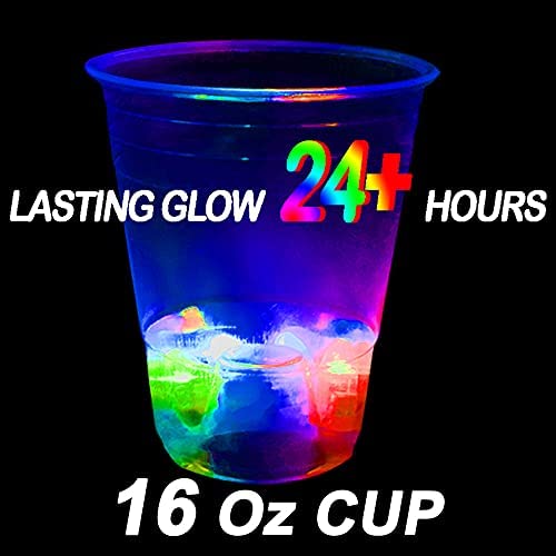 16oz Glowing Party Cups for Indoor Outdoor Party Event Fun, Pack with Flashing color Bright Glow-In-The-Dark Colors for House Parties Birthdays Concerts Weddings BBQ Beach DJ Holidays