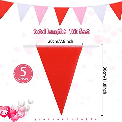 165 Feet Valentines Day Pennant Banner Triangle Bunting Flags Valentines Day Decor u200bValentine Red White Pink Flag Banner for Valentines Indoor Outdoor Party Decoration Wedding Proposal Anniversary