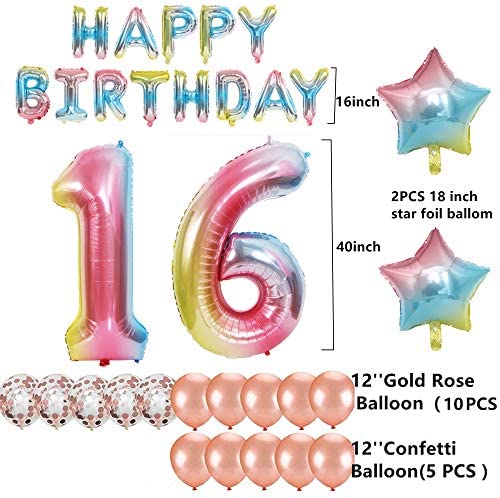 16th Birthday Decorations – Number 16 Balloon – 40 inch Rainbow Gradient Colorful Big Size Number Foil Helium Balloons For Birthday Party Supplies