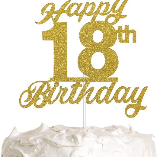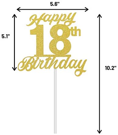 18th Birthday Cake Topper, 18th Happy Birthday Party Decoration with Premium Gold Glitter