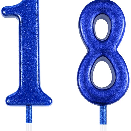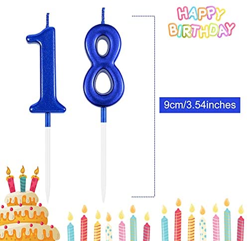 18th Birthday Candles, Cake Numeral Candles, Blue 18th Cake Topper Candles for Birthday Cake Favor Wedding Anniversary Party Celebration Supplies