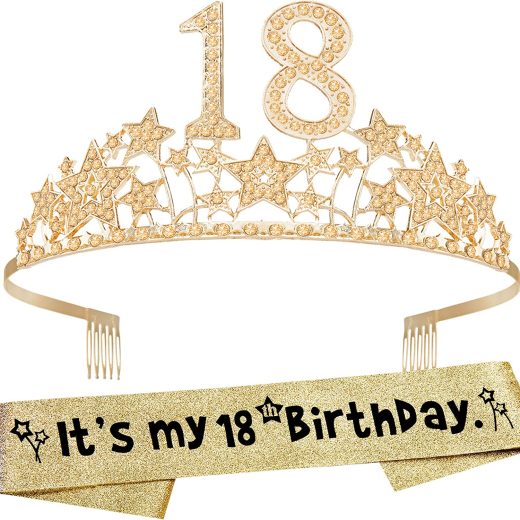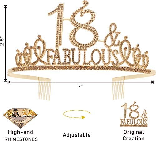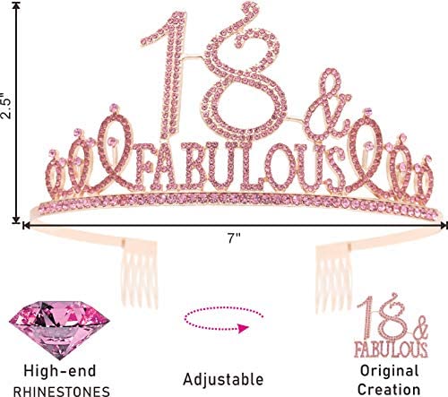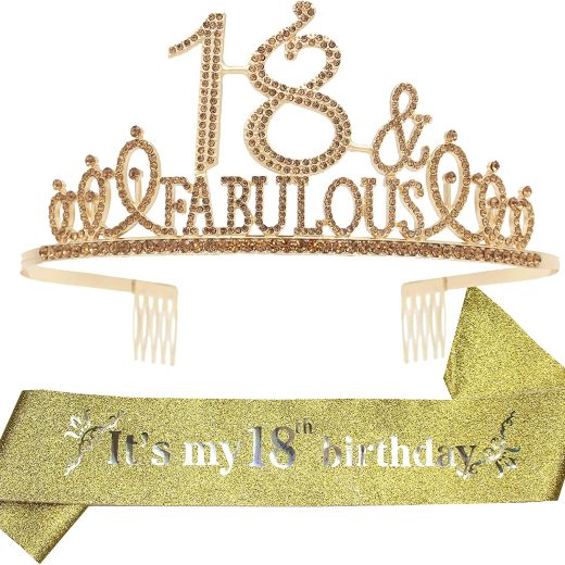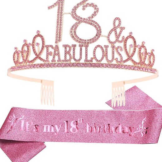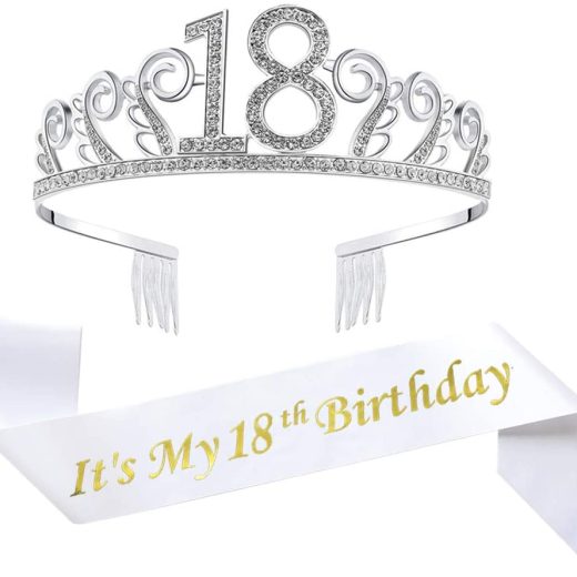 18th Birthday Gifts for Girls, 18th Birthday Tiara and Sash, 18th Birthday Decorations for Girl, 18th Birthday Crown and Sash for Girl, 18 Sash for Girl, u200b18 Tiaras and Crowns for Girls