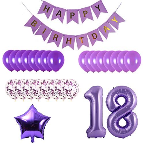 18th Birthday Party Decorations Kit Happy Birthday Banner with Number 18 Birthday Balloons for Birthday Party Supplies 18th Purple Birthday Party Pack