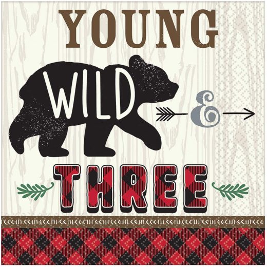 Young Wild & Three 3rd Birthday Beverage Napkins-16pc