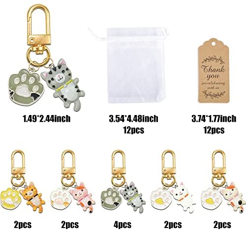 12 Pack Cat Party Favors, Cute Cat Hanging Keychain Decoration With Organza Bags Thank You Kraft Tags for Party Favors Classroom Prizes Cat Themed Birthday Party Gifts