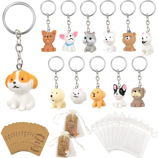 12 PACK Puppy Dog Party Favors Puppy Key Chain With Organza Bags Thank You Kraft Tags For Back To School Item Birthday Party Favors Backpack Key Decorations Classroom Rewards Dog Theme Supplies