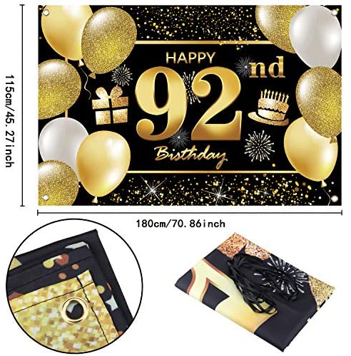 92nd Happy Birthday Banner Birthday Decorations for Men Birthday Party Decorations Birthday Backdrop