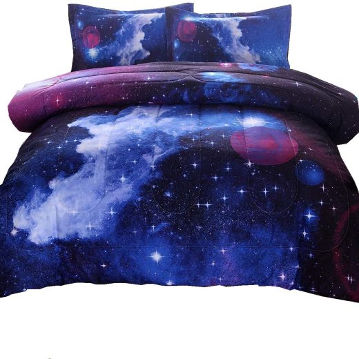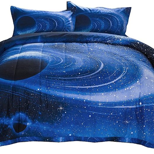 A Nice Night Blue 3 Pieces Comforter Set Galaxy Bedding Set Full Size with 2 Matching Pillows