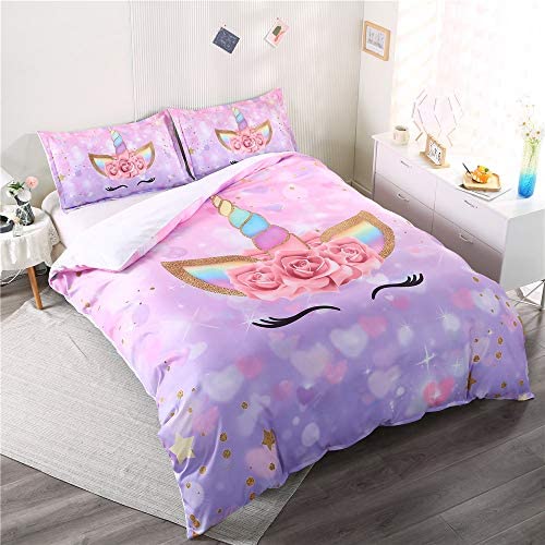 ADASMILE A & S Unicorn Bedding 3 Piece Flower Girl Comforter Twin Size 68
