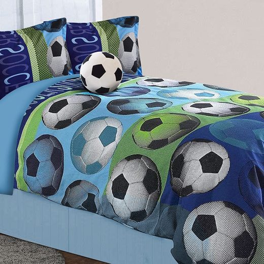 All American Collection 4 Piece Full Size Soccer Comforter Set with Furry Friend (4PC Full Size)