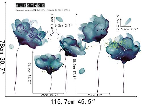 Amaonm Fashion 3D DIY Creative Blue Flowers Wall Decals Flower Vines Wall Stickers Murals Removable Decor Decal for Living Room Girls Bedroom Home Wall Decoration Nursery Room Sticker Kids Stickers