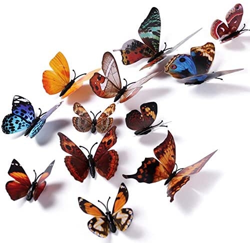 Amaonm 24pcs 3D Vivid Special Man-Made Lively Butterfly Art DIY Decor Wall Stickers Decals Nursery Decoration, Bathroom Décor, Office Décor, 3D Wall Art, 3D Crafts for Wall Art Kids Room Bedroom