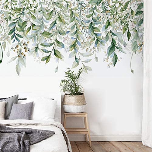 Amaonm Ceative Removable Green Plant Wall Stickers DIY Green Leaves Wall Decals Hanging Tree Vine Wall Decor for Living Room Kids Girls Babys Bedroom Office Nursery Home Walls Decoration (B)