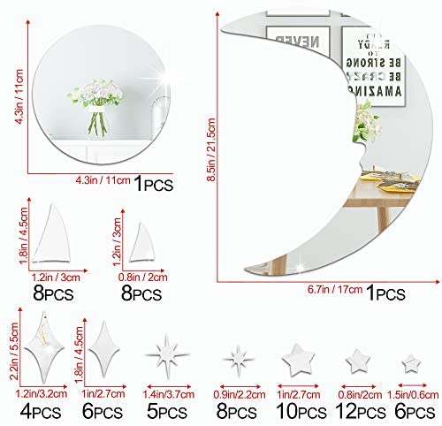 Amaonm Removable 3D Acrylic Mirror Surface Crystal Moon and Stars Wall Decal DIY Home Art Decor Wall Sticker Murals for Kids Boys and Girls Bedroom Room Ceiling Bathroom TV Background