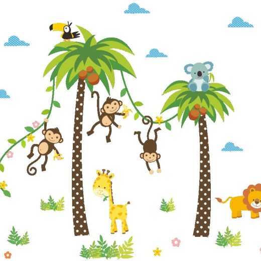 Amaonm Removable Creative DIY Nursery Room Wall Decor Stickers Giant Coconut Tree & Animal Monkey Birds Wall Decals for Kids Babys Boy and Girls Bedroom Living Room Classroom Wall Decorations