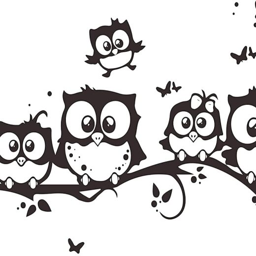 Amaonm Family Owls On The Tree Branches Wall Decal Removable Cartoon Black Vinyl Owl Wall Art Decor Stickers for Babys Children Rooms Bedroom Living Room TV Background