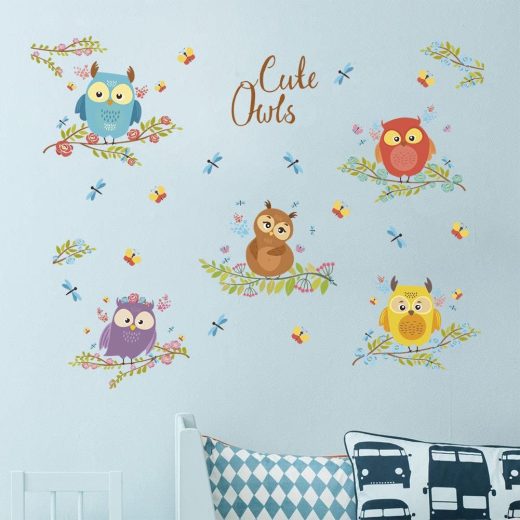 Amaonm Cute Owls Wall Decals 5 Owls on The Tree Branch Wall Stickers Removable DIY Butterfly Wall Decor Peel Stick Art for Home Walls Kids Bedroom Girls Nursery Room Living Room Bathroom Decoration
