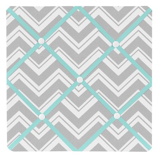 Turquoise and Gray Chevron Zig Zag Fabric Memory/Memo Photo Bulletin Board by Sweet Jojo Designs