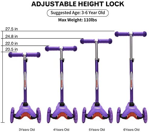 ChromeWheels Scooter for Kids, Deluxe 3 Wheel Scooter for Toddlers 4 Adjustable Height Glider with Kick Scooters, Lean to Steer with LED Flashing Light for Ages 3-6 Girls Boys