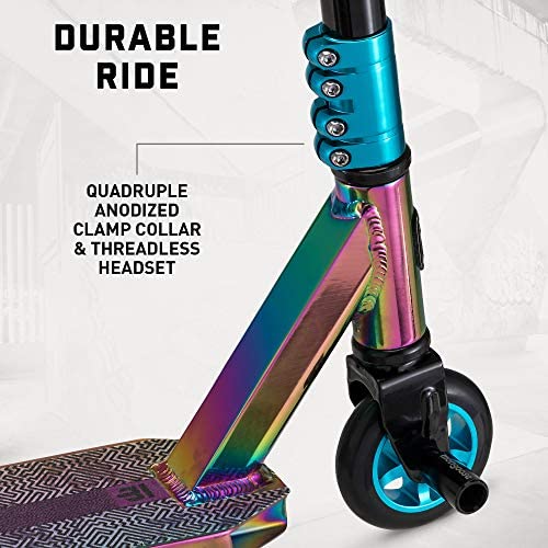 Rise Youth and Adult Freestyle Stunt Scooter, High Impact 110mm Wheels, Bike-Style Grips, Lightweight Alloy Deck, Multiple Colors