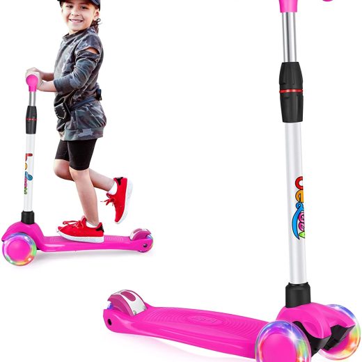 Scooters for Kids, Foldable Scooter for Toddlers Girls & Boys, LED Lights Up 3 Wheels Scooter Adjustable Height, Lean to Steer,Great Gifts for Children Ages 3-12