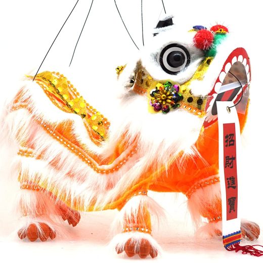 Mandala Crafts Hand String Puppet with Rod, Chinese Marionette Lion Toy, Orange on White