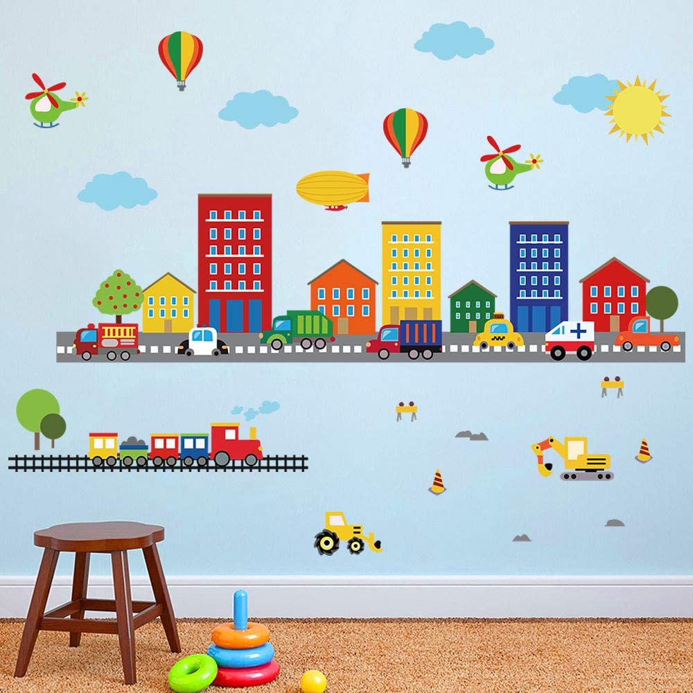 • decalmile Construction Kids Room Wall Decals Transportation Cars Wall Stickers Baby Nursery Childrens Bedroom Playroom Wall Decor $16.14
