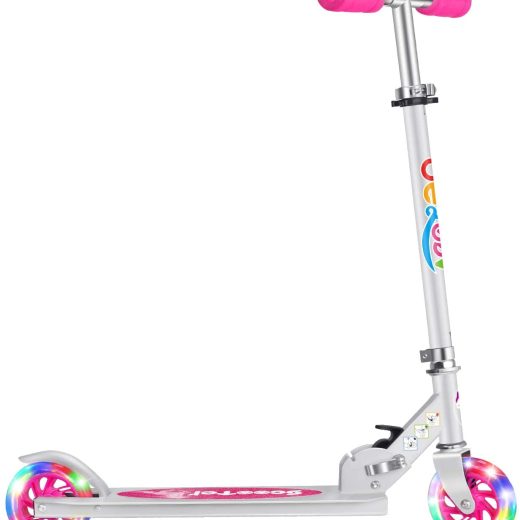 Beleev V1 Scooters for Kids 2 Wheel Folding Kick Scooter for Girls Boys, 3 Adjustable Height, Light Up Wheels for Children 3 to 14 Years Old