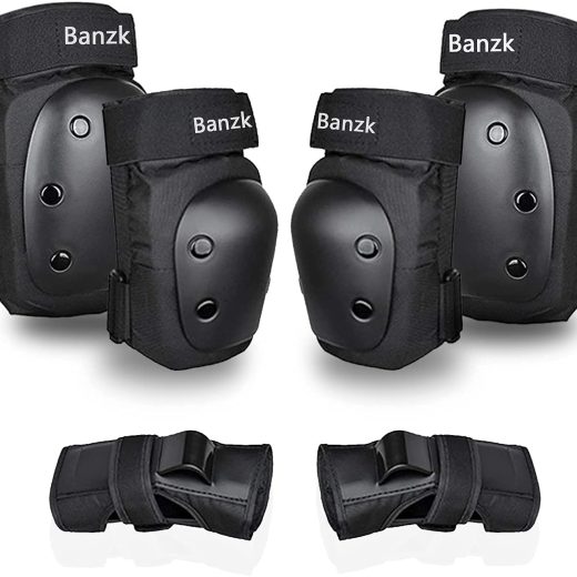 Banzk Adult Knee Pads Elbow Pads Wrist Guards for Adult Kids, 6 in 1 Protective Gear Set for Skateboarding Biking Roller Skating Cycling Outdoor Sports (Large)